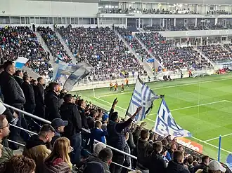 Kohorta Osijek is a group of supporters of Croatian soccer club NK Osijek. It used to be located on the southeast and east stands of the Gradski vrt stadium in Osijek. On the new stadium it is located on the south side of the Opus Arena.