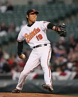 On January 13, 2009, Uehara signed a two-year, $10 million deal with the Baltimore Orioles. He started the 2009 season as the number two starter behind Jeremy Guthrie.[6] Uehara made his big league debut on April 8 against the New York Yankees. Uehara earned the win, going five innings and allowing one run. His second outing resulted in a win against the Texas Rangers.