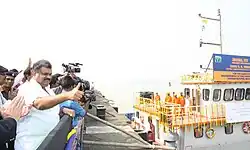 Former Union Shipping Minister G. K. Vasan inaugurated Inland Waterways Authority of India's (IWAI) Garden Reach Jetty 2 of the Kolkata Inland Port at Garden Reach on 25 November 2013. On this day, the first barge anchored at the port, the coal barge of 2100 DWT (Deadweight tonnage) was flagged off by the Union Shipping Minister and started its journey to Farakka.[5]