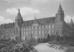 The college was named after Saint Louis of Toulouse, a saint who was an heir to the throne of Napoli, but who renounced the throne and gave it to his younger brother, and himself became a Franciscan friar, took all the Franciscan vows and served the poor, the sick and the hungry. The seminary building was designed by a monk and featured 600 doors and 1,200 windows, all covered by 17,000 square metres (4.2 acres) of roof.[2] Started in 1904 and completed in 1909, it was completely self-sufficient, with its own generators, workshops, wells, fields and orchards. A small-gauge railroad was built first to transport building materials and then to carry the 300 tons of coke used annually for heating. It was evacuated during World War II and reopened as a school in 1951.[2] It closed in 1978.[2] It was attended by over 3,000 male students.