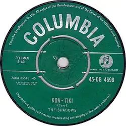 "Kon-Tiki" is an instrumental tune by British group the Shadows, released as a single in September 1961. It was the group's fifth hit and their second to top the UK Singles Chart.[3]