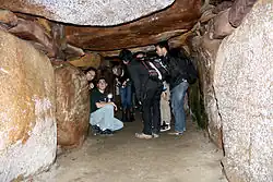 The megalithic structure dated to Neolithic Funnel Beaker culture. The grave consists of a chamber (10 m long by 2 m wide) with a long passage (7.5 m long). This type of graves is found primarily in Denmark, Germany and Scandinavia, and occasionally in France and the Netherlands.