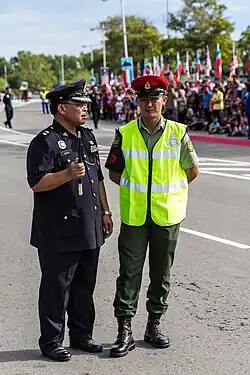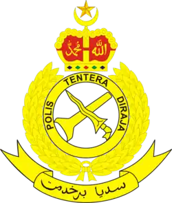 The Royal Military Police Corps (Standard Malay: Kor Polis Tentera DiRaja)[1] is the military police branch of the Malaysian Army. Referred to as the "Redcaps" like their British counterpart or, more popularly, known as "MPs", the Kor Polis Tentera DiRaja keep discipline within the Army ranks and ensure security at Malaysian Army installations.
