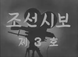 Korean Newsreel (Korean: 조선시보; Hanja: 朝鮮時報) is a North Korean newsreel series that first premiered in March 1948.[1][2][3] It was produced by the National Film Studio of North Korea (국립영화촬영소) until 1957, when the National Film Studio became the Korean Art Film Studio (조선예술영화촬영소) and a separate studio for producing documentaries and newsreels, the Korean Documentary Film Studio (조선기록영화촬영소), was established.[4] Production of the series continued even during the 1950–1953 Korean War, with film reporters moving alongside North Korean troops during the fighting. Another newsreel was produced between 1950 and 1953 titled For The Reunification of the Fatherland (조국통일을 위하여). It is not known with certainty how many episodes of the series were created, with different sources citing 40, 70, and 80 episodes.[5]