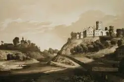 The Ruins of Korets Castle, a drawing by Napoleon Orda