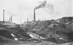 Following 1901, improvements in smelting technology enabled the company to exploit its large deposits of “black ore” (a mixture of copper, zinc and lead). In order to attract workers to the remote location, the company built much of the local infrastructure, including apartments, a hospital, theatre, as well as a railroad to connect the town to the Ou Main Line railway at Ōdate. By 1907, it was the largest producer of copper in Japan. [4] However, local complains about air and water pollution from the smelter increased dramatically in the 1910s and 1920s, as was the case at the Ashio Copper Mine. [5]