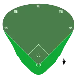 | Field size | Left Field — 95 m (312 ft) Left Center Field — 118 m (387 ft) Center Field — 118 m (387 ft) Right Center Field — 118 m (387 ft) Right Field — 95 m (312 ft) ![]() |