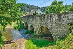 In Dolní Kramolín (part of Chodová Planá), the stream is bridged by a valuable stone bridge, protected as a cultural monument. Originally built in the Baroque style in the first half of the 18th century, it was rebuilt into its present form in the 19th century.[6]