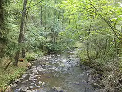 The lower course of the stream flows through a valley with meanders, without human intervention. An 8 km (5 mi) long educational trail leads through the valley.[4]