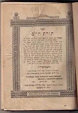 Torat Haim, Oradea, 1927 - Book of Rabbi Chaim of Kossov