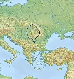 The Coțofeni culture area can be seen from two perspectives, as a fluctuation zone, or in its maximum area of extent. This covers present day Maramureș, some areas in Sătmar, the mountainous and hilly areas of Crișana, Transylvania,[5][6] Banat,[7] Oltenia,[8] Muntenia (not including the North-East), and across the Danube in present-day eastern Serbia and northwestern Bulgaria.[9]