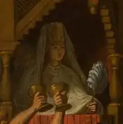 ![]() Detail of Attila's wife in Mór Than's The Feast of Attila (1870) | |