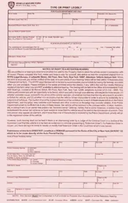 Upon seizing a vehicle, police must provide to the owner of the impounded vehicle a "Vehicle Seizure Form".[19] This form provides instructions for vehicle owners on how to request a Krimstock hearing.[19] (All vehicle owners are entitled to a hearing, but hearings are scheduled only when an owner requests one.)[19] Vehicle owners must attend the hearing.[20] Unlike criminal proceedings, asset forfeiture proceedings are a civil matter; accordingly, vehicle owners are not entitled to a state-appointed attorney.[21] Vehicle owners have the option of retaining a private attorney, but many represent themselvespro se. OATH attempts to provide assistance for pro se owners, including a detailed how-to website created in 2011 in conjunction with the Lawyering in the Digital Age Clinic at Columbia University School of Law.[1] It also makes referrals to potential pro-bono representation.[21]