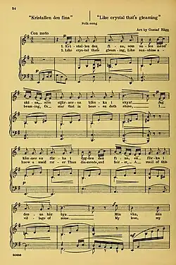 "Kristallen den fina" (English: "The fine crystal"[1][2]) is a traditional Swedish folk song.[3] According to some sources, it originated in the village of Skattungbyn in the province of Dalarna.[4] In 1843, Richard Dybeck published in Runa his version of the song recorded in Skattungbyn.[5][6]