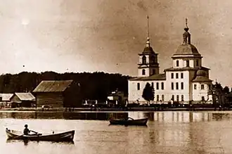 The Nativity Church[10] was built at the end of the 18th century (approximately in 1790) in Krokhino settlement (Belozersky District of Vologda Oblast). The church was at the water's edge on the coast of Lake Beloye, at the origin of the Sheksna River.