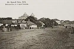 The presence of iron ore in the regions around Kryvyi Rih has been known since at least 1781 and was rumoured before;[1] being known to the ancients.[2] Throughout the 1800s the region was investigated for its mineral wealth. Iron ore of 70% iron content and manganese ores were found. In 1881 the industrial extraction of iron ore from the near region began, alongside other developments such as the construction of the Kryvyi Rih railway. By 1884 over 100,000 tons of iron ore had been extracted, and the railway though Kryvyi Rih (the Yekateryninska railway), 477 versts (505,6 km) long, from Yasynuvata station via Kryvyi Rih to Dolynska station had been opened.[1] The production expanded rapidly in the next years, as it did in other industrialized regions and countries. By 1896 there were 20 mines producing over 1,000,000 tonnes of ore in the Kryvyi Rih Basin, and the population had exploded though the toll on the health of the working men had begun to be noticed.[1] Industrial expansion continued in the region up to 1917. Production dropped during the first world war due to lack of labour.[1]