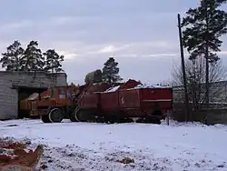 The Kushaverskoye peat railway's first line was constructed in 1967, in the area of Khvoyninsky District, Novgorod Oblast from the village Yubileyny to the swamp peat fields. The peat railway was built for hauling milling peat and workers and operates year-round. The total length of the Kushaverskoye peat narrow-gauge railway at the peak of its development exceeded 60 kilometres (37 mi), of which 16 kilometres (9.9 mi) is currently operational.[2]