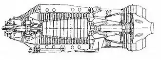 - Turbine: 3-stage[1] turbine, of which only the first and second stages are cooled[1]