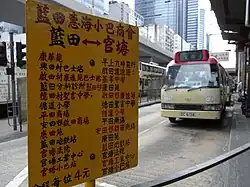 A minibus Stop at Yue Man Square. This handwritten bus stop sign and bus display are still written as "官塘"