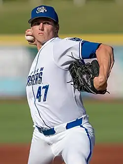 The Atlanta Braves selected Wright with the fifth overall selection of the 2017 Major League Baseball draft.[14] He signed for a $7 million signing bonus on June 16, and was assigned to the rookie-level Gulf Coast League Braves.[15] Wright was promoted to the Florida Fire Frogs in August 2017, and finished the season there.[16][17] In nine games started between the two teams, he was 0–1 with a 2.65 ERA.[18]