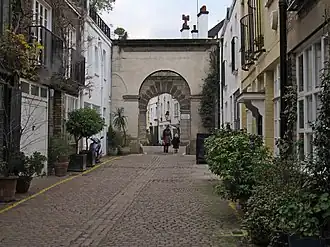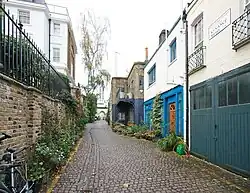 Kynance Mews is a mews street in South Kensington district of the Royal Borough of Kensington and Chelsea in London, SW7. The mews consists of 33 residential properties on a setted road that passes from Gloucester Road on the east, before being bisected by Launceston Place, with the western end of the mews ending in a cul-de-sac. The entrances to the mews pass through three arches, each listed Grade II on the National Heritage List for England. The arches were built c. 1860 to a design by Thomas Cundy III.[1][2][3]