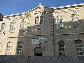 A new building was constructed in the 1900s for the community, which was funded by a 50,000 Franc donation by the Jewish Colonization Association in 1901.[5] In 1904, the school came under the control of the Aid Association of German Jews, also known as "Ezra". In 1913, during the War of the Languages, the school remained loyal to Ezra, resulting in many teachers resigning and establishing a competing school.[1] Many students went on strike and did not come to school, demanding the return of the teachers,[6] but following the transition of occupation of the land from the Ottoman Empire to the British Mandate for Palestine, the school fell under jurisdiction of a Zionist organization.[3] The school was administered by Chaim Aryeh Zuta, and by 1930, it was the largest of public schools in Jerusalem and had 550 students.[7]