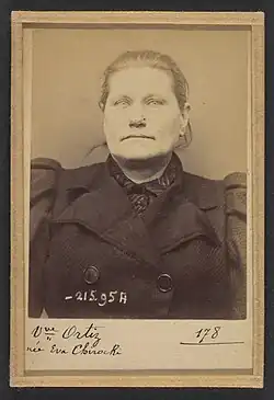 - ^ Bertillon, Alphonse (1894), Chiroki. Eva (veuve Ortiz). 53 ans, née à Grosbitlech (Autriche). Cuisinière. Anarchiste. 21/3/94., retrieved 2025-06-08