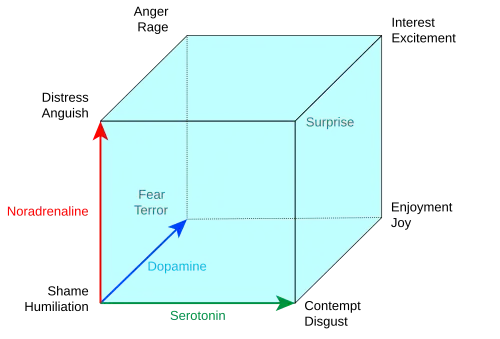 Lövheim Cube of Emotion is a theoretical model for the relationship between the monoamine neurotransmitters serotonin, dopamine and noradrenaline and emotions. The model was presented in 2012 by Swedish researcher Hugo Lövheim.[1][2][3]