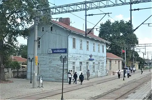 Lüleburgaz railway station (Turkish: Lüleburgaz istasyonu) is a station in the village Durak, Turkey. Despite carrying the town's name, the station is located about 5.9 km (3.7 mi) south of Lüleburgaz.[1] Ever since the station was opened, a settlement began around its vicinity, which later became the village of Durak. TCDD Taşımacılık operates a daily regional train from Istanbul to Kapıkule, which stops at Lüleburgaz station.[2]