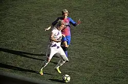 Lütfiye Ercimen (white) playing for Kdz. Ereğlispor in the 2017–18 First League.