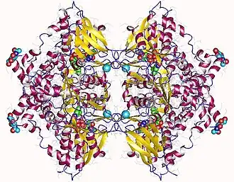 8. ^ a b c d e Pawelek PD, Cheah J, Coulombe R, Macheroux P, Ghisla S, Vrielink A (August 2000). "The structure of L-amino acid oxidase reveals the substrate trajectory into an enantiomerically conserved active site". The EMBO Journal. 19 (16): 4204–15. doi:10.1093/emboj/19.16.4204. PMC 302035. PMID 10944103.