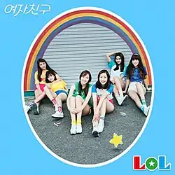 LOL is GFriend's first studio album, released eighteen months after their debut. It follows their three successful extended plays that comprise their "school series" trilogy.[1] It was released at midnight on July 11, 2016, in two versions: "Laughing Out Loud" and "Lots of Love".[2][3] That same day, GFriend held two showcases in Seoul, where they performed songs from the album.[4] The media showcase was held at Yes24 Live Hall in Gwangjin-gu, and the showcase for fans was broadcast live via Naver's V app.[5][6] The group then promoted the album on music shows, starting with SBS MTV's The Show on July 12, where they performed "Navillera" and "Gone with the Wind".[7] In the second week of promotion, GFriend won all five music show awards, on The Show, Show Champion, M! Countdown, Music Bank, and Inkigayo.[8][9] They won a total of 14 music show awards, including triple crowns (three consecutive wins) on The Show, M! Countdown, and Inkigayo.[10]