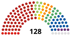 The Chamber of Deputies was elected in the 2021 legislative election, in which Juntos Hacemos Historia, consisting of the National Regeneration Movement (Morena), the Labor Party (PT), and the Ecologist Green Party of Mexico (PVEM), kept their majority but did not reach the two-thirds supermajority required to pass López Obrador's proposed constitutional reforms.[1] This legislature was notable for being the first where deputies were eligible for reelection,[2] with 129 out of the 500 seats being filled by returning deputies.[3]