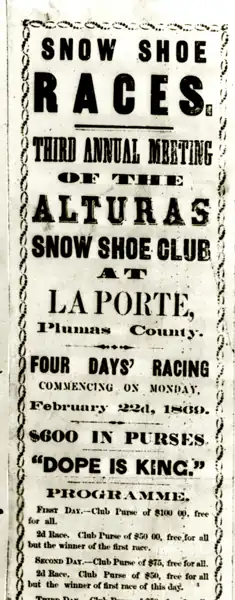 - ^ "Snow Shoe Races in Sierra" Sacramento Daily Union, Volume 36, Number 5596, 4 March 1869