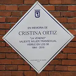 - ^ QMD!, Por (13 November 2017). "Cristina 'La Veneno' ya tiene una placa conmemorativa "provisional" en Madrid". Que Me Dices (in European Spanish). Retrieved 10 April 2020.