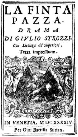 La finta pazza, the tenth opera ever in Venice, premiered in the Carnival season, and partly due to the good publicity campaign it was a great success, with 12 performances in Venice in 17 days.[1] The libretto was reprinted already the same month, and for the first time in Venice, the opera house reopened after Easter to produce more performances of the work.[1]