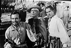 The filming included more than 1,000 actors as extras for the crowd scenes, although only eighty actors had speaking parts.[33] Among the extras there were local gauchos hired by the producers and others provided as laborers by their employer, the Patrón Costa, a wealthy local family.[34] There were also the aforementioned fencing trainer and soldiers lent by the military garrison and two pato players from Buenos Aires, experts falling from horses. As the gauchos did not want to be dressed as Spaniards, military conscripts played the part.[35]