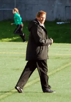 By 27 February, Canada Soccer president Nick Bontis resigned after provincial and territorial soccer administrators, and the men's and women's national teams, requested either his resignation or removal by Canada minister of sport Pascale St-Onge.[61] The teams reached an interim pay agreement that equalized compensation and incentives between the men's and women's teams a week later on 5 March[62] but by 9 March were again at odds with Canada Soccer after the federation publicly shared private details about a proposed collective bargaining agreement without notifying the players.[63] The dispute also resulted in an investigation by the Canadian House of Commons Standing Committee on Canadian Heritage, which began hours after the federation leaked the proposed CBA, and during which Sinclair alleged that Bontis referred to the women's team's compensation proposal by asking, "What was it Christine was bitching about?" Bontis, whose testimony was delayed by the death of an alleged stalker,[64] apologized while claiming he did not remember the language he used.[60][65] The hearings also included Bontis's predecessor Victor Montagliani, who was questioned about his handling of former Vancouver Whitecaps Women coach Bob Birarda, who was accused and convicted of sexual harassment of underaged players during his tenure.[64][6]