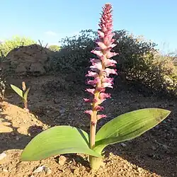 Lachenalia carnosa is a species of geophyte in the genus Lachenalia. It is endemic to the Northern Cape and Western Cape.[1] It is also known by the names Namakwa- persviooltjie (Afrikaans for small purple Namaqua violin) and flesh viooltjie.