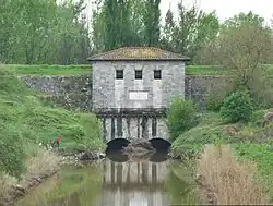 In 1852, the Grand Duke Leopold II ordered the construction of a "barrel" or channel beneath the Arno to convey the waters of the Lago di Bientina directly to the sea. This idea had been first proposed in 1699 by an engineer named Ciaccheri, but had not been carried out due to the high cost.[2] Between 1852 and 1859 a new canal, the Canale Imperiale, was dug under the leadership of the engineer Alessandro Manetti. The channel known as La Botte was constructed beneath the Arno, consisting of a double-barreled siphon 250 meters long which was inaugurated in December 1859.[2][12] This largely completed the draining of the Lago di Bientina, circumventing the troublesome Arno altogether and draining the valley of the Lago di Bientina directly to the Ligurian Sea.[13]
