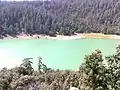 Lake Aguelmam Azegza (in Central Atlas Tamazight: ⴰⴳⵍⵎⴰⵎ ⴰⵣⴳⵣⴰ[1]) is a natural lake in Morocco covering an area of 40 hectares and reaching a depth of 25 metres (82 ft). It is situated in the village of Aguelmam Azegza at an altitude of 1,500 metres (4,900 ft) above sea level.[2] The community takes its name from the lake, which is named after the Amazigh people and translates as the green lake. The lake is located in the Khénifra Province of the Béni Mellal-Khénifra region, approximately 30 kilometres (19 mi) from the city of Khénifra in the western Middle Atlas.[3] The lake is renowned for its considerable influx of tourists during the summer months.[4]