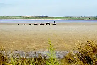 The potential of Lake Bumbunga's shallow waters for salt harvesting was recognised in 1868. Salt was harvested from the lake bed in summer months from 1881; two years later, output was 6.1 to 8.1 tonnes (6 to 8 long tons) per day. Evaporation pans, furnaces, tank and men's quarters were built at the northern end of the lake. Mining provided employment and other economic benefits for many years; the town of Lochiel, on the west bank of the lake, is said to have "developed slowly with the industry, its survival in the 20th century being almost totally dependent on the salt harvesting".[8][10] By 1910 there were at least three lease-holders scraping thousands of tons of salt from evaporation pans when the lake dried up – usually in December.[8] In 1913, the Australian Salt Company was incorporated and held all the lake leases until 1971, when the company became a wholly owned subsidiary of Cheetham Salt Company Limited – now Cheetham Salt Limited, Australia's largest producer and refiner of solar salt.[11][note 1]