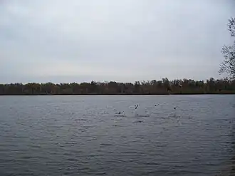 Big Lake Butte des Morts (/ˌbjuːdəˈmɔːr/[1]) is a shallow freshwater lake located in the U.S. state of Wisconsin, in Winnebago County. It is part of the Winnebago Pool (also known as the Winnebago System) of lakes in east central Wisconsin, along with Lake Winnebago, Lake Poygan, and Lake Winneconne. The lake is fed by the Fox River in the southwest and the Wolf River draining from Lake Winneconne in the northwest, and drains via the Fox River southeast into Lake Winnebago.[2] The lake is part of the Butte des Morts region in Winnebago County, Wisconsin. This lake is not connected to Little Lake Butte des Morts, which is located to the north, downstream of Lake Winnebago, fed by the lower Fox River.