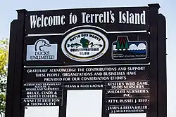 The city of Oshkosh lies between Lake Butte des Morts and Lake Winnebago. The unincorporated community of Butte des Morts lies on the lake's northern shore, west of Oshkosh. Lake Butte des Morts is part of the Fox-Wisconsin Waterway, which used to be used to travel between the Mississippi River and Lake Michigan, but with the closure of both the Portage Canal and the locks on the lower Fox River has ceased operation. A marked navigation channel guides passage across the lake from the inflow of the Wolf River in the west (connecting to Lake Poygan), to the outflow of the Fox River east to Lake Winnebago, a remnant of the waterway. Lake Butte des Morts is popular among both fishermen and recreational boaters during the warm months, and with ice fishermen in the winter. U.S. Highway 41 (US 41) / Interstate 41 (I41) spans the east end of the lake via a bridge and causeway combination. The bridge includes the Tribal Heritage Crossing, a designated national trail, which is a portion of the Wiouwash State Trail.[10] Terrell's Island is a DNR-organized wetlands conservation project located on the south shore, enclosed by a breakwall that extends some distance into the lake.