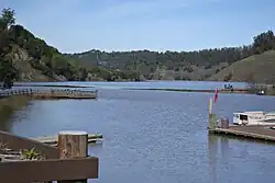 Lake Chabot is a reservoir located in the park.[1] The northern part of the lake and park lie within the boundary of the city of Oakland, while the southern part lies in an unincorporated area of Alameda County adjacent to Castro Valley and San Leandro.[2]