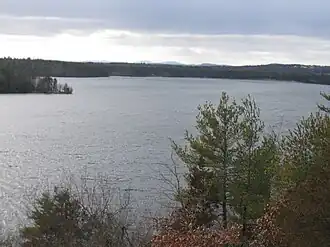 Lake Massabesic or Massabesic Lake[1] is a lake in southern New Hampshire, United States, covering about 2,560 acres (1,040 ha)[2] (equivalent to about 4 sq mi or 10 km2) within the city of Manchester and the town of Auburn. Because it provides drinking water for Manchester, swimming and water skiing are not allowed there.[3] Popular sports on the lake are sailing, fishing, and kayaking. The recreational trails along the lake provide views of the lake and the town of Auburn.