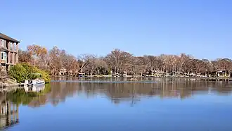 Lake McQueeney is a reservoir on the Guadalupe River located 5 miles (8 km) west of Seguin in Guadalupe County, Texas, United States. It was formed in 1928 by the construction of a dam to provide hydroelectric power to the area. Management of the dam and lake was assumed by the Guadalupe-Blanco River Authority on May 1, 1963. Its prominent feature is Treasure Island, a residential area that has been subjected to major flooding in 1972, 1998, and 2002. Most of it is approximately 10 feet (3 m) deep, with deeper sections along the center channel of the river. It is a venue for outdoor recreation, including fishing, boating, and swimming, and is maintained at a constant level year round. Amid concerns of aging dams along the lower Guadalupe River, the Guadalupe-Blanco River Authority announced that four lakes will be drained including lake McQueeny beginning Sept 16th (2019).[1]