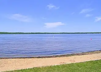 Over 270 homes and four resorts are located on the shorelines of Lake Noquebay. Since 1975 the Lake Noquebay Rehabilitation District manages the plants, pollution run-off, and water quality of the lake. Their responsibilities also include the operations and maintenance of the dam. Their efforts have greatly reduced the phosphorus runoff from nearby farmlands.[1] Historical data show that for several decades phosphorus levels have been increasing with an unknown cause. Phosphorus levels in 2018 were 25–30 μg/L (1.1×10−5–1.4×10−5 gr/U.S. fl oz). The aquatic ecosystems of northeast Wisconsin, phosphorus water levels average about 19 micrograms per liter. A nutrient study had been planned for 2018 by the Lake Rehabilitation District to measure the amounts of phosphorus entering the aquatic system and possibly locate the source. The study could take three years to complete and will be partly funded by Wisconsin DNR Lake Management Planning program grant.[24] In June 2020, PFAS-contaminated biosolids were tested in water wells of nearby agricultural fields, which seem to be approaching Lake Noquebay. Four water wells in the area had samples reflecting detection levels above 20 parts per trillion of PFOA and/or PFOS. Two additional water wells had PFAS positive detections that show levels between reporting limit and 20 parts per trillion. Although, these were detected nearby, actual testing of Lake Noquebay was not determined at that time.[25]