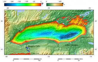 1. ^ National Geophysical Data Center, 1999. Bathymetry of Lake Ontario. National Geophysical Data Center, NOAA. doi:10.7289/V56H4FBH [access date: March 23, 2015].