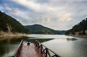 Lake Sünnet is located about 27 km (17 mi) east of Göynük and 105 km (65 mi) southwest of Bolu in Bolu Province. It was formed by landslide in a narrow and deep valley between Kurudağ and Erenler Hill. The lake covers an area of 18 ha (44 acres) at 820 m (2,690 ft) high above mean sea level.[1] Its depth reaches up to 22 m (72 ft). The lake is fed by creeks and springs around.[2]